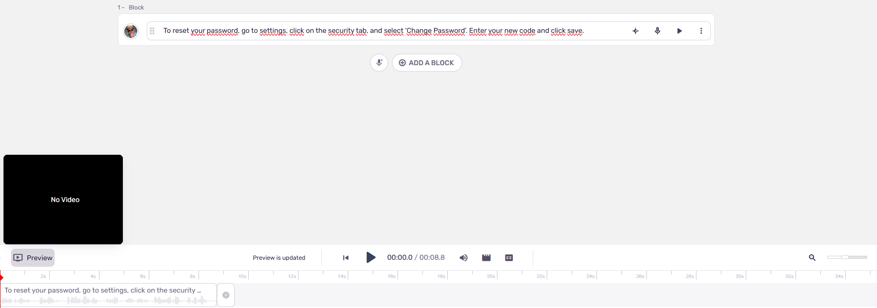 The biggest strength of Lovo is the Video Timeline. Instead of a simple text box, you get a multi-track interface where you can: