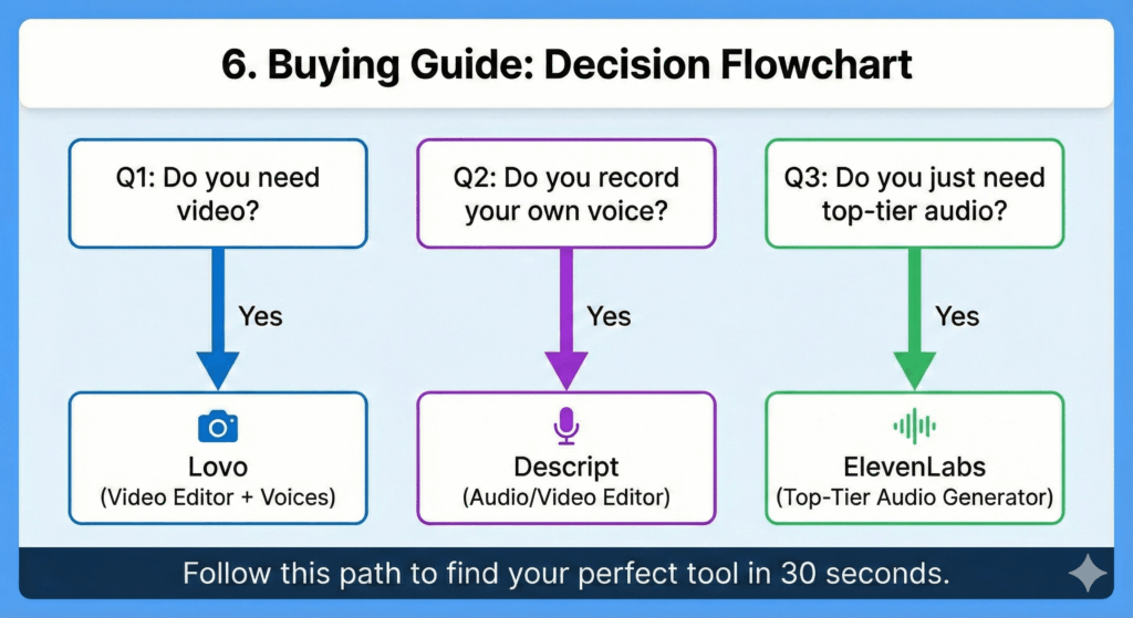 If you want the absolute best audio quality and don’t mind editing video elsewhere, stick with ElevenLabs. But if you want to automate your video production and stop juggling three different subscriptions, Lovo AI is the most efficient tool on the market.