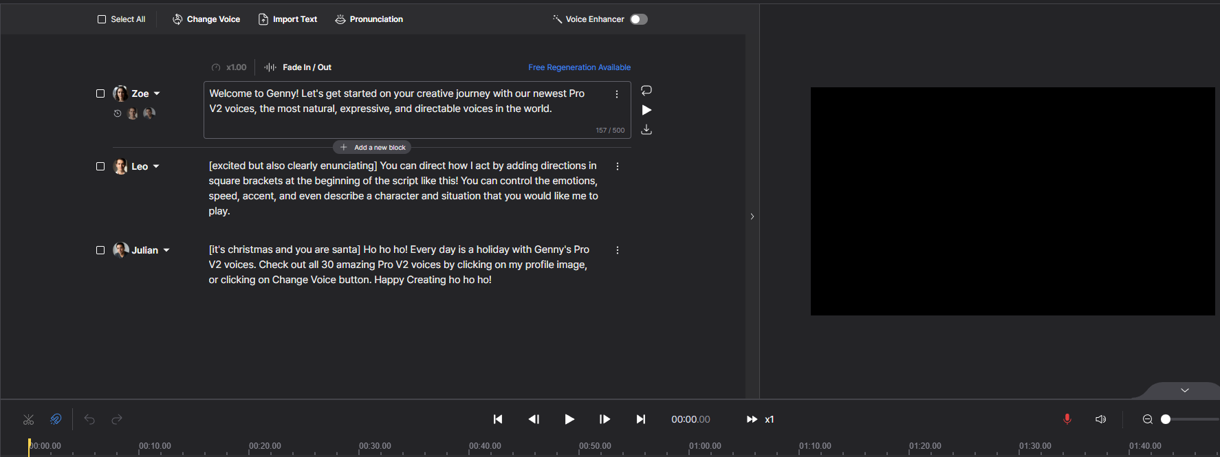 • It is not great for generating a 10-minute audiobook from scratch using a stock voice (use ElevenLabs for that).